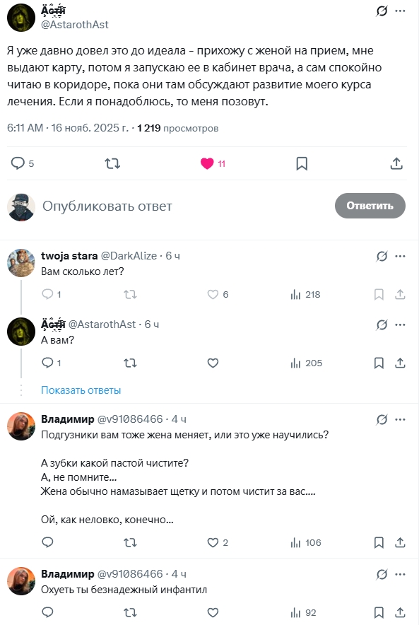 Там ещё дохуя ответов где возмущались хули мужсины и парни ходят на приём с мамой.