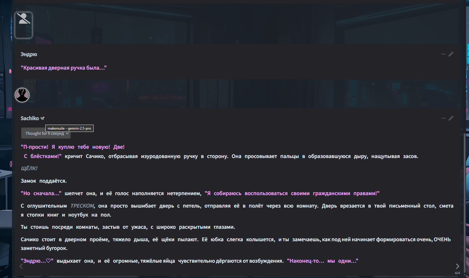 • Гайды на таверну: https://rentry.co/Tavern4Retards | https://rentry.org/STAI-Termux (на андроид)