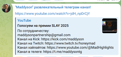 А ты в курсе, что у Ильи Мэдисона довольно большую часть постов в основной телеге постит его манагер, а также ведет телегу про казино. Теперь мыслительный процесс включи на две секунды
