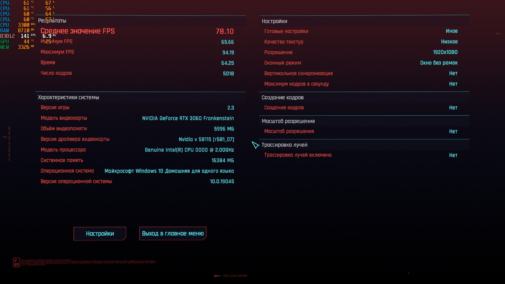 Для понимания, на что сборки способны на практике, собираем результаты в бенчмарке киберпанка 2077.