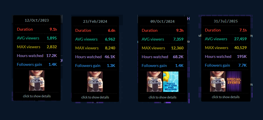 а тут от силы год стримов с ебанутыми паузами и после каждый зрители не отваливаются а наоборот увеличиваются