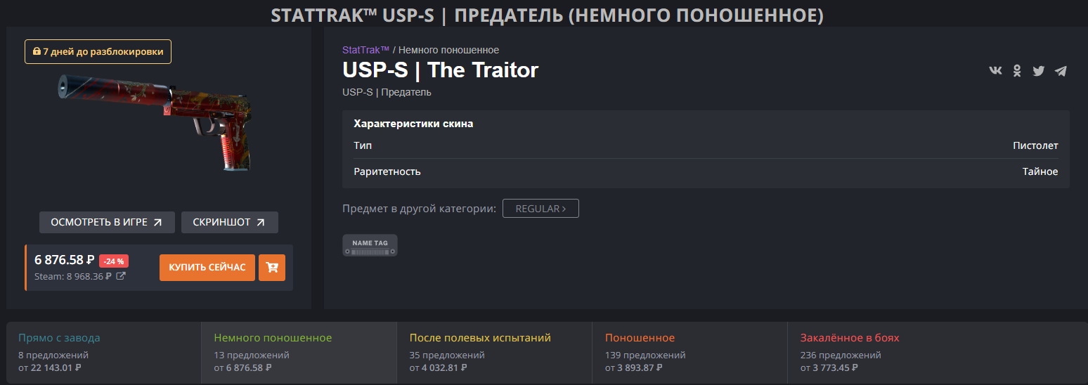 Олигарх всё дешевеет, minimal wear который, его там уже до ебеней матери выгрузили в стим, по 23к можно взять. Вангую упадет до 15к (блядь!) но вряд ли меньше потому что выкуп 10к стоит. А вот фн версии всего несколько штук, 90к стоит. Надо было подождать. Ебала тех кто покупал за 50к и выше.
