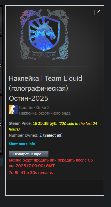 >• Renegades (Holo) выросли с 1.000 руб до 5.000 руб. >• Vitality (Holo) взлетели с 500 руб до 1.700 руб >• Godsent (Holo) выросли с 800 руб до 2000 руб. >• EG (Holo) с 900 руб до 2.300 руб. и тд.