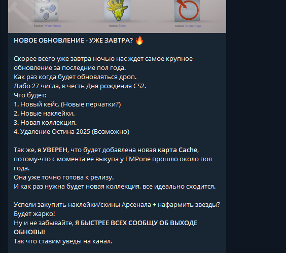 Успешный кейсоанон успешно вырубился за пол часа-час до обновы и проспал все тайминги, зато хорошо выспался. Теперь поднимет только нанокопеечку, вместо двух нанокопеечек. Ничего не пампе естественно не фиксанул и в первый день разлока все будет торговаться без меня. Множитель зевса убрали, былой ДМ фарм всё, но придумают что-то новое. Налудоманил пока 50 сомнительных стикеров без лентикулярки, 100 звезд еще осталось на лудочку, растяну удовольствие, таки открою че нить вечерком. Кто не любит лудить может вкинуть звезды в фивер и гарантированно профитнуться на этом. Некоторым людям в чатике 0 красных брелков за 1к звезд дропнуло, а это 25 пропусков. Наклейки конечно слабоваты.