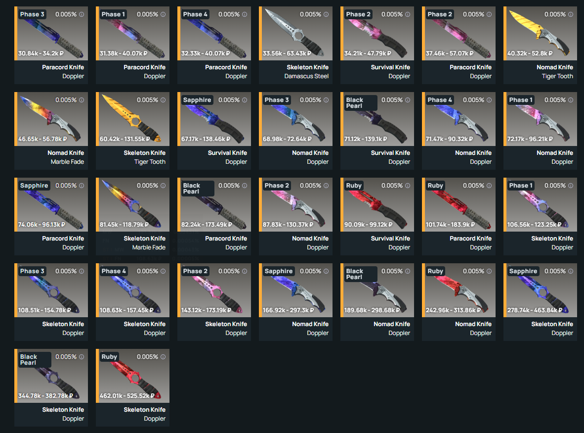 А вот фивер, до сих пор люди открывают, в отличие от галерейного. Там авик ликвидный и реально нормальные ножи.