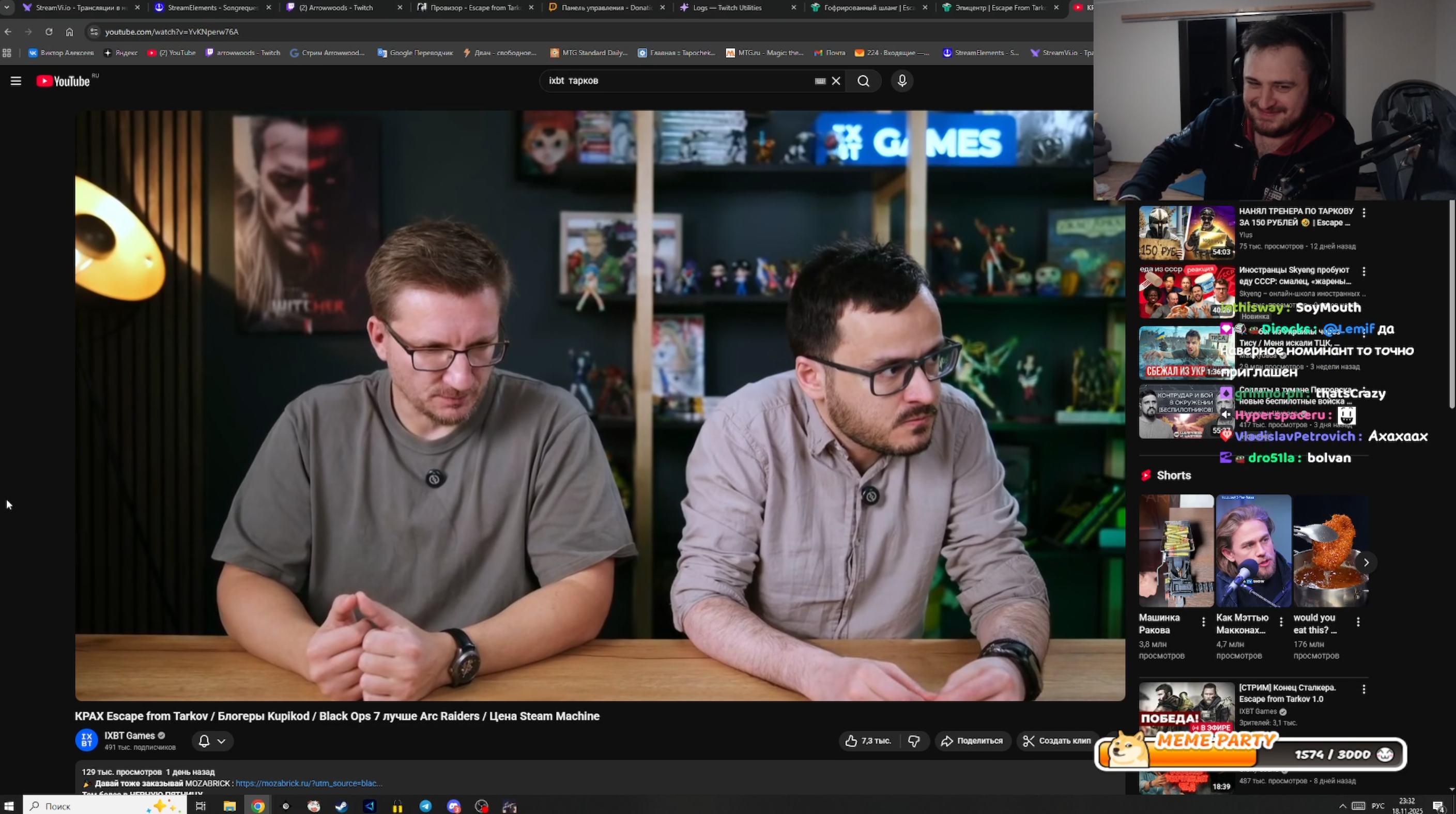 Ну ёпт это его стиль игры, ты можешь играть активнее. Он хотя бы байки рассказывает какие-то как он играл один или с бостейджем, советы раздаёт по игре новичкам в чате, и самое главное любую хуйню Буянова отмывает. Мне понравилось как он Мэлу объяснил что в Тарков нужно приходить не играть и развлекаться, а работать, как в старом вове, прям максимальный фанбой игры.
