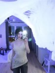 она в уличной одежде, интересно кому готовила)