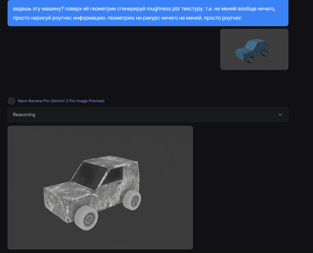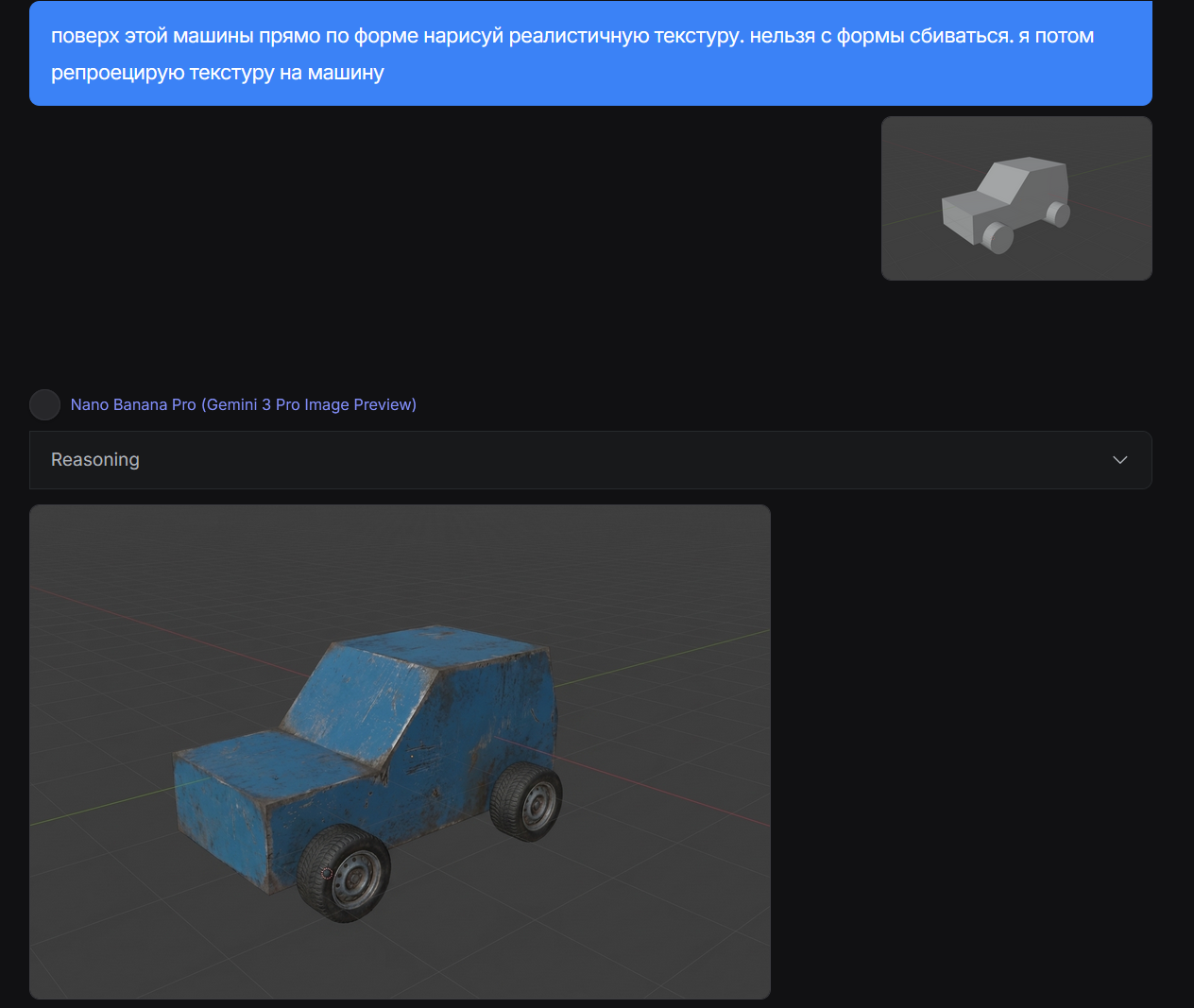 >>326857703 я побырому сделал модельку нужно просто машину крутить и с разных ракурсов текстурки генерировать а потом обьединять в зависимости от угла чтобы норм было т.е. нужно с десяти ракурсов сгенерировать а я для теста с одного ракурса сделал