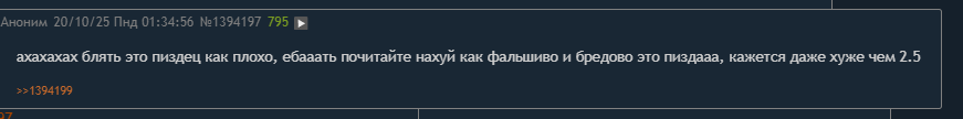 >>1425870 Так я же не говорю, что это причина эха. Я говорю, что эта хуйня триггер. Это как слоп и слова-триггеры слопа. Сырками не бросайся, головой думай в следующий раз лучше.