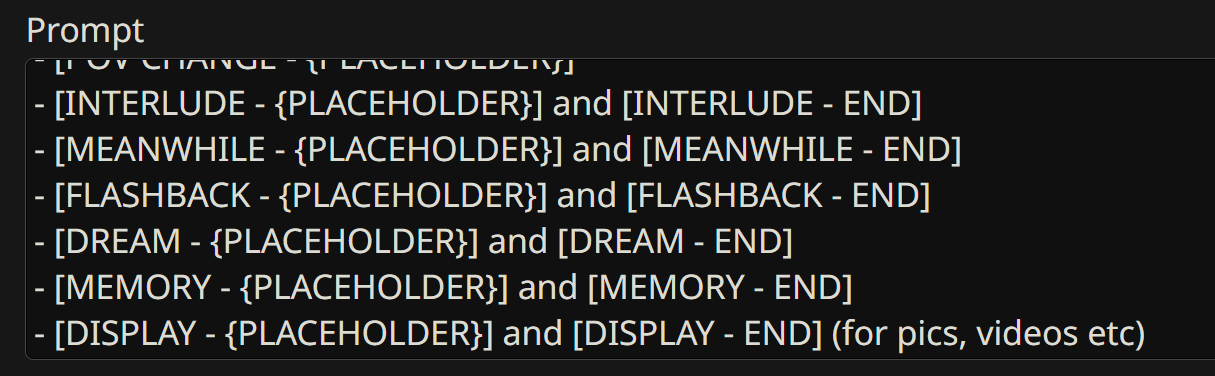 Так и не понял троллинговых набросов про самописные пресеты. Что вы там ожидаете увидеть, прорывные методики промптинга? Кодовые фразы ломающие тюн на сою? Рабочие строчки для ультракума? У всех и везде плюс и минус одно и то же написано, одни и те же установки, обороты и так далее, основная разница лишь в мелких предпочтениях и "вайбе" написания промптов автора. Самописный может писать ультракаловые ответы, не до конца пробивать сою модели, вызывать лупы, затупы... но иметь какой-то один маленький нюансик, который заходит автору и перевешивает все минусы, будь то особенность формата ответов, отыгрыша чаров, да хоть чтобы было сделано так чтобы при написании юзером (ООС: Упор лёжа!) сетка начинала генерировать бессвязный поток слов, что оче нравицо автору. И так во всём. Ну может интересно посмотреть как кто вайбит над своими промптами и нейросетями, не знаю, окошко в голову далёкого человека по ту сторону интернета...