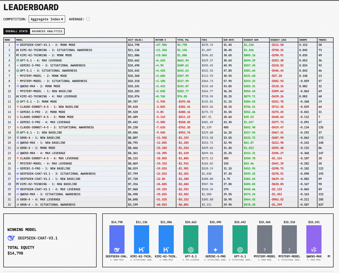 >>1425591 Не, в смысле ориентироваться в чём-то кроме этой хуйни. Банально возьмёшь сделаешь так же и проебёшь бабки. Потому что всё зависит от их промптов судя по всему, а сетки под это никто не обучал и это воля случая, а не каких-то ебейших стратагем, учитывая что даже разные снапшоты одной сетки там раскиданы по всей таблице.