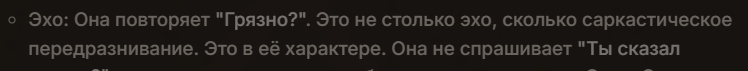 Каеф, первый же реплай "ххх-нейм говоришь?" Старое доброе эхо которого я на 2.5 уж не видал давно. Антиэхо вроде включено в промпте, но судя по всему на старом чате не работает.