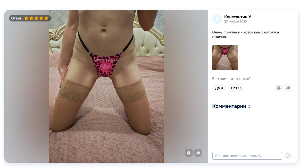 Почему на озоне нет кнопки пожаловаться. Там скоро совсем эротику будут фотографировать чтоб привлекать покупателей своей кормилицей