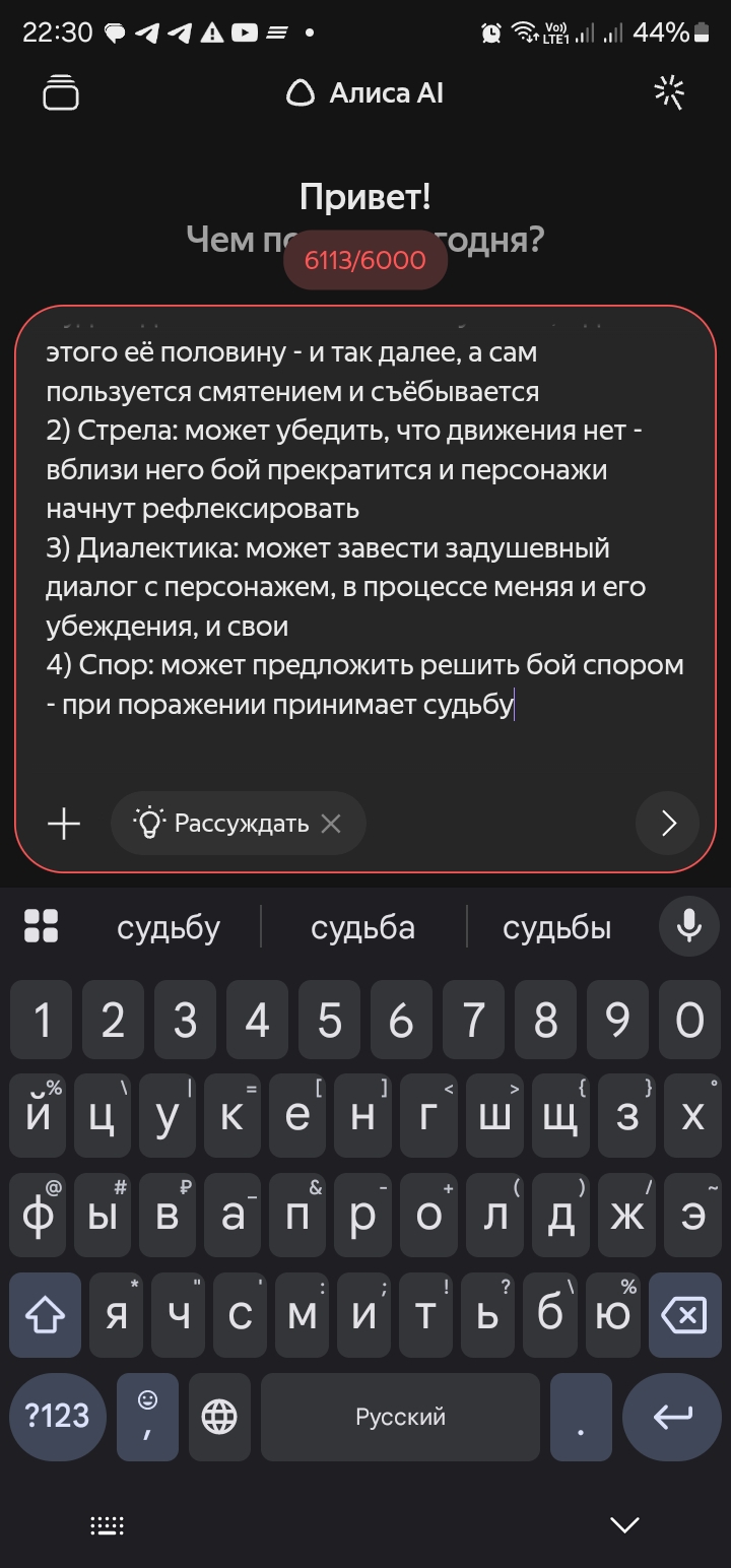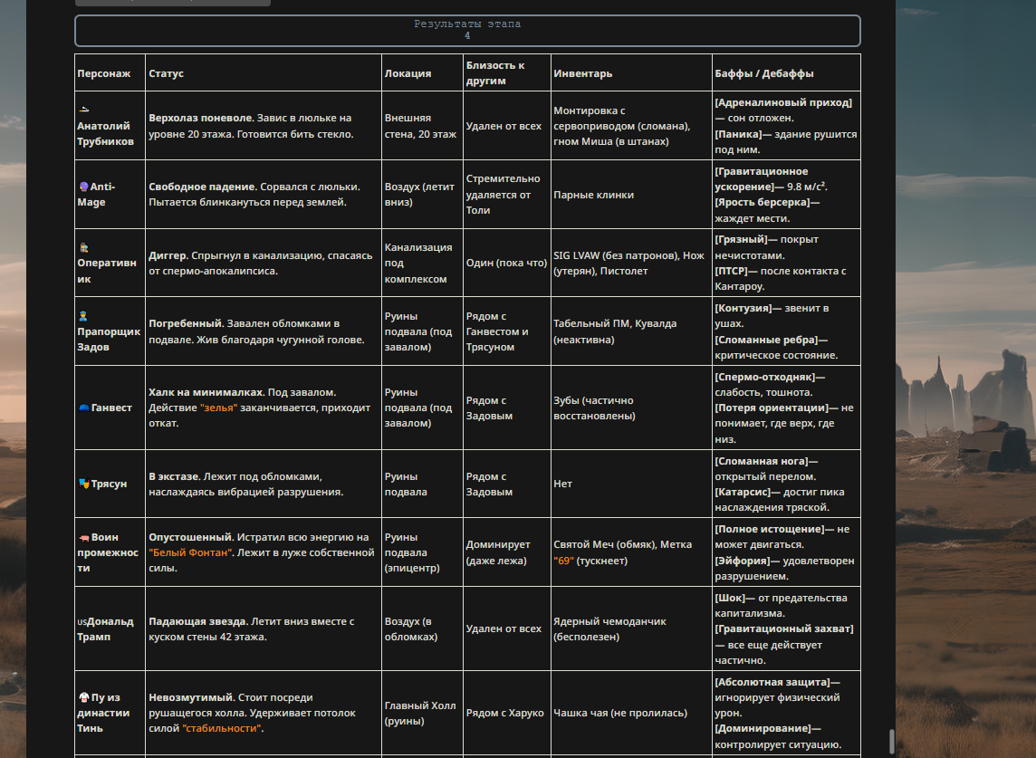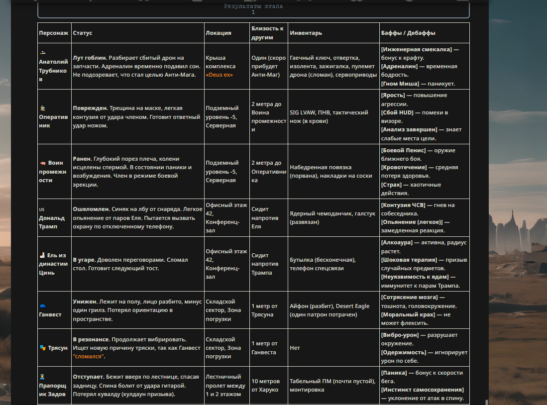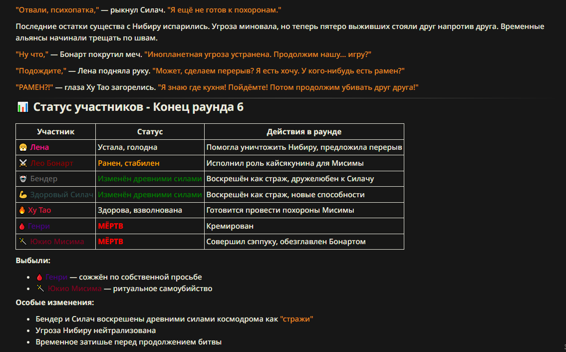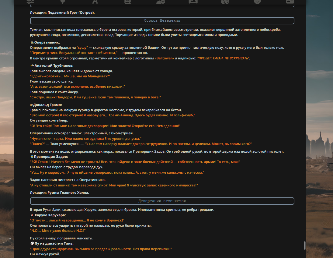 Так анончики. У меня тут приступ диареи. Если я нормально просрусь и останусь во вменяемом состоянии, то попробую провести вам игру в Алисе или дипсике с персонажами которых накидали