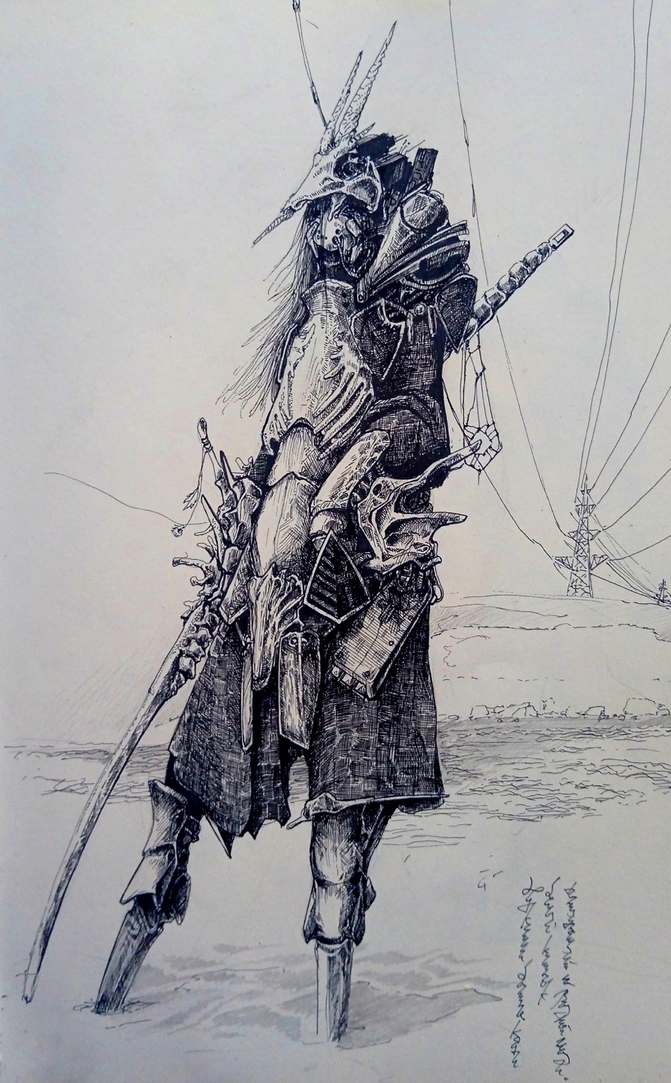 Персонаж: Нукими Мирорайя Внешний вид: приложен на пикрелейтеде Описание: Рост - чуть более 3 метров Масса - в обычном состоянии около 300 кг Внешний вид и характеристики. Большей частью роботизированное существо. Киборг, состоящий из высушенного и обработанного человеческого тела, пронизанного грибным мицелием, выступающим в качестве аналога нервной системы, дополненное полным экзоскелетом из технической керамики ( корундово бадделеитовый слоистый композит, стабилизированный иттрием и цирконием) В качестве одежды используется огнеупорная асбестовая скань с включениями кевлара, покрытая графитом для огнепрочности и электроизоляции. Вооружение: 3,2 метра нагамаки ( катана с копьеобразной рукоятью), материал режущей части - графитизированный сиалон. Электромагнитное ружье, стреляющее металлическими стержнями длиной 54,5 см. Один стержень с ЭМ ловушкой для небольшого количества антивещества. Используется против сильнейших противников или как крайняя мера, лишь с большой дистанции изза аннигиляции Снаряжение помимо: Воздушные фильтры, доп аккумуляторы, генератор струны. Способности: Использование вибрации 1мерной струны для локального изменения размерности пространства. Понижение меньше 3 до 2 приводит к уплощению профиля пользователя и преобразованию исчезающей массы в скорость, а так же для уклонения от атак. Увеличение размерности выше 3 приводит к локальному упрочнению в силу наложения кристаллических решеток из соседних проекций 3 мерного пространства. Восприятие в электромагнитном диапазоне от радиочастот до рентгеновского включительно. Рассыпание спор грибов для быстрого создания мицелия и односторонней интеграции электронных систем, затронутых грибами, с целью разведки и ориентирования. Характер: максимально спокойный, размеренный. Высокомерное отношение к существам, чей эстетический облик ей не понравится. Ведет себя зачастую как женщина с кошачьими повадками. является привереженкой учений дзэн.