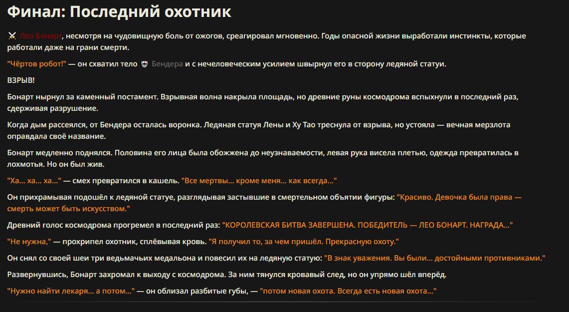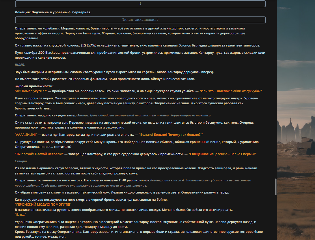 "Я иду за тобой," — прошептал он. BLINK. Он исчез, телепортируясь сквозь потолки, этаж за этажом, приближаясь к крыше, где Толя Трубников уже начал разбирать свой трофей.