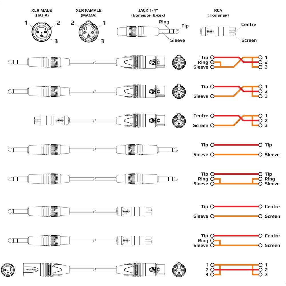 >>327012927 Кабели с XLR разъёмами, балансные. От микрофонов к пульту, например. От пульта к усилителям. Но их невозможно подключить неправильно. Стоят, кстати, вменяемо.