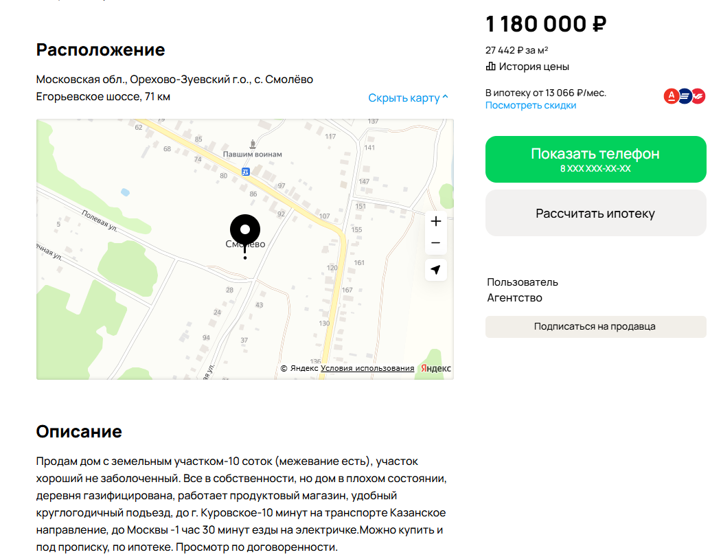 >>327026984 Не знаю, я брал по рекламе на поселкино, но внезапно когда потом оставил отзыв его от туда стерли, цена тоже была другая. Поселок тоже как всегда был полулегальный, и при покупке половину стоимости услугами. При реге по доверености сняли права на подъезд вокруг участка (это было обременение на дорогу). Через год начались попытки постоянных поборов, еще через год поставили шлагбаум и берут деньги. Сейчас вообще запилили ТСН по протоколу (200+). Так что советовать не буду, направление ленинградское.