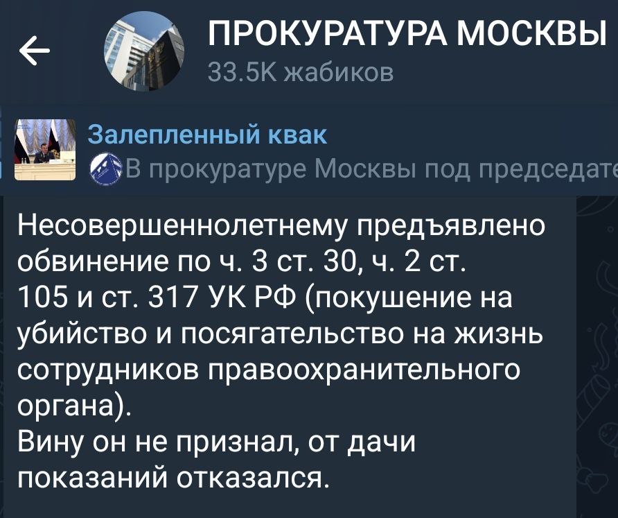 Чурке вьебали 105ю по мотивам религиозной ненависти, к ней добавили 30 статью чтобы адвокат чурки не мог съехать на "ну он же никого не убил какая тут 105я". И сверху ещё вьебали 317 для верности, потому что нападение на сотрудников также попало на камеру.