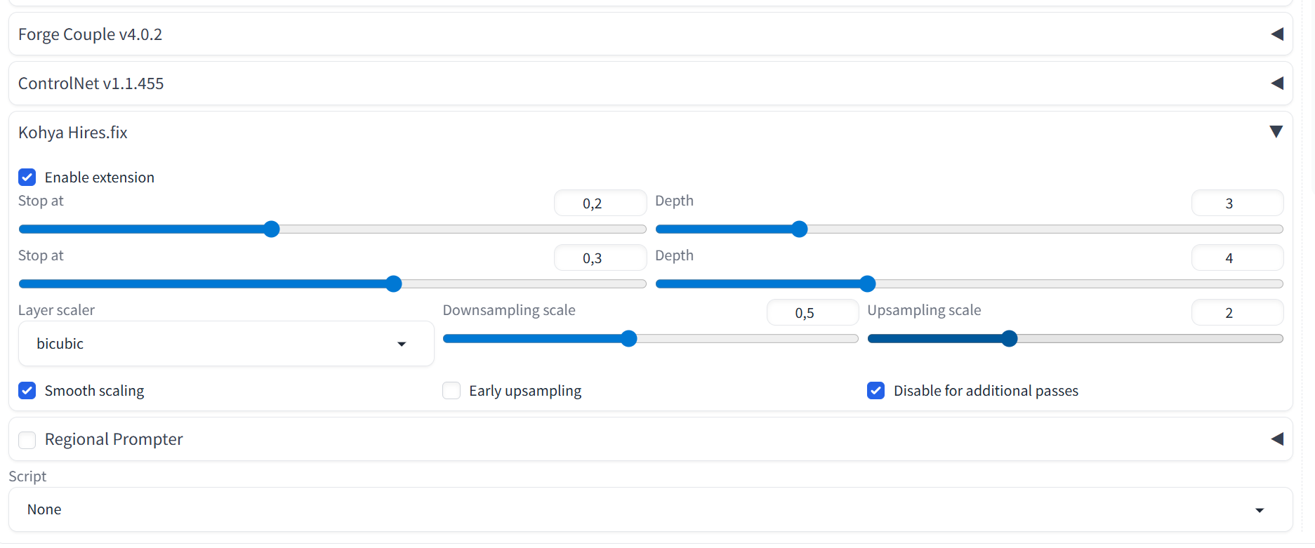 >>1419530 Выше вон про хайресфикс было. Один не работает, с форджа работает. Плюс несколько других расширений, которыми я пользовался время от времени для нескольких специфических задач. Но для генерации картинок они не нужны, так что маловероятно, что кто-то с подобным столкнется.