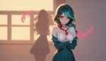 >>1417805 >>1417876 В общем заинтриговали меня с Kohya Hires.fix. Целый день пытался разобраться с этим расширением. Для генерации выбрал базовое разрешение 1581 на 1082 (это 1216 х 832 х 1,3). Настройки в самом Kohya Hires.fix рек не менял, получил такой результат. По настроению картинка нравится, но не покидает ощущение, что с анатомией что-то не так. Есть здесь вообще критические нарушения?