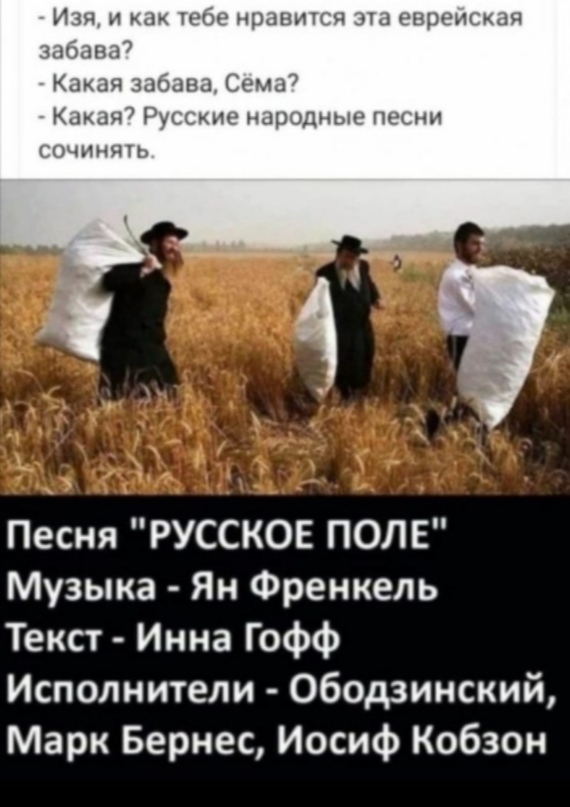 >>3451911 Ты мне предлагаешь всю эту блевотину переслушать, что ли? В чем особенность евреев? Они всегда жили в различных странах, но всегда оставались одним народом, не растворились в других - почему? Потому что сохраняли автономность при внешней мимикрии под живущие рядом народы. Все, что еврей делает - он делает про и для евреев. Исключений нет. ЕРЖ Леонард Коэн об этом говорил прямо, когда его спросили, мол, вот у вас в новом альбоме появились еврейские национальные мотивы в мелодиях, вы решили сделать свою музыку более еврейской? Моя музыка, ответил Коэн, всегда была еврейской и никакой другой не могла быть - ведь я еврей.