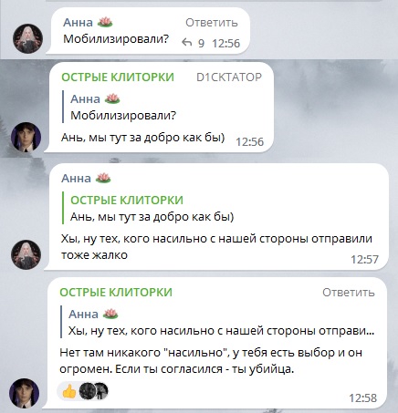Он говорит что ему не жалко наших солдат потому что они цитирую "неофашисты, убийцы украинцев, сами выбрали идти на войну". Это вранье и обезличивание, попытка выставить солдата не как человека, с мамой папой, мечтами и планами, которого государство отправило на войну или обстоятельства вынудили стать военным. Попытка выставить солдата как нечто неодушевленное, по сути своей злое, как то чему нужно противостоять.