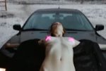 Video is silent. DO NOT change, alter, or regenerate the person's face — preserve the exact original facial features, skin texture, and expression 100%. Face preservation is the TOP priority, even if it means lower sharpness or minor artifacts. breathes heavily. Женщина быстро падает спиной на капот черного BMW 7 Series (E38) со всеми светящими фарами, с чёрными тонированными стёклами и раздевается. Navel pure. У неё стройная фигуру и грудь размера D-cup. Ожерелье на шее остаётся. Её соски и pubic закрыты символом «X», нарисованным неоновый ярко-жёлтый светящиеся краской. Руки вытянуты за головой в стороны лежат на капоте машины. Её грудь колышется, и она мягко покачивается в невидимом ритме — как будто она едет верхом на лошади, но лежа. Каждый толчок заставляет её грудь колыхаться. Её взгляд мягко скользит вниз, губы приоткрыты. Тишина. Только ее тяжелые вздохи, стоны и щелчки. Тело блестит от пота. Она довольная. No music. Silence. Полностью сохраняются черты лица с фото.