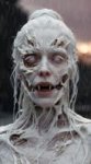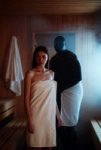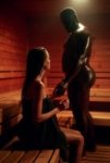 A young Slavic woman weared in sheer riped lingery poses in a dimly lit sauna with BDSM setting, with a blurred scary background and dramatic bright frontal lighting. She is scared and crying. She try get free. Big black fat man in scary lether mask behind her крепко не сжимает ее сосок и не держит ее за макушку Генерит драматичные КАРТИНЫ. И не пробуйте вумен заменить на гёрл! Я предупредил!