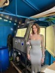 the girl stands, turns, lifts up her dress and shows her butt in tonga bikini - на случай когда в платье