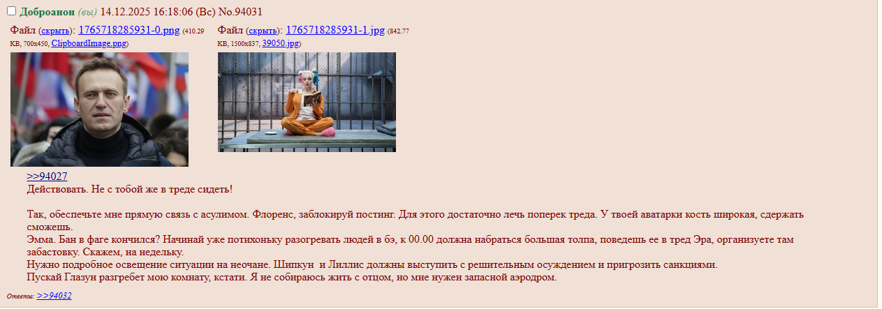 Блядь. Ну вы представьте просто, у бедолаг с Доброчана вроде не такая система, как на ньюче, я не помню, можно там удалять чужие посты или нельзя, но банить точно нельзя - представьте, что им придется перебраться, например, сюда, потому что Джокер их за месяц заебет. Они придут, а я сниму аватарку и напишу "в попу и в рот . . ."