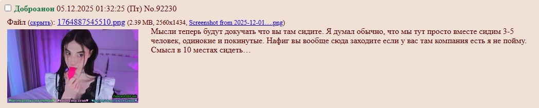 >сам переписывается там с Эммой Ну я же не дурачок, который "официально" игнорирует треды, а потом приходит туда сперва под твинком, а затем открыто, и делает вид, что ничего не было. Я могу быть где угодно, если мне это нужно. Но постоянно я там не сижу.