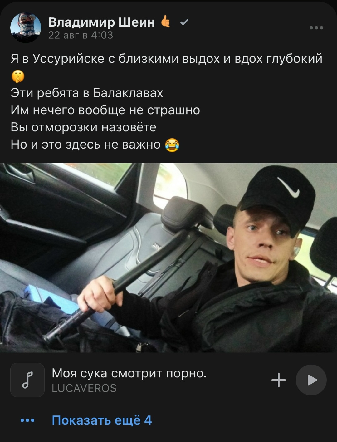 >>327231090 (OP) Настоящий мужчина, искренне завидую его соседям - живут как за каменной стеной, ни одна сука не сунется. Вот таким должен быть настоящий мужчина!