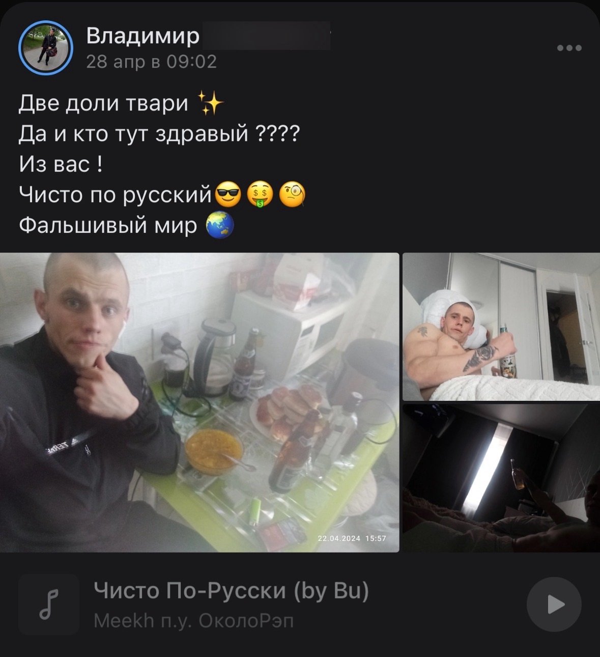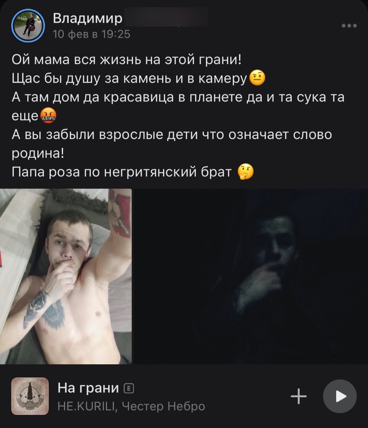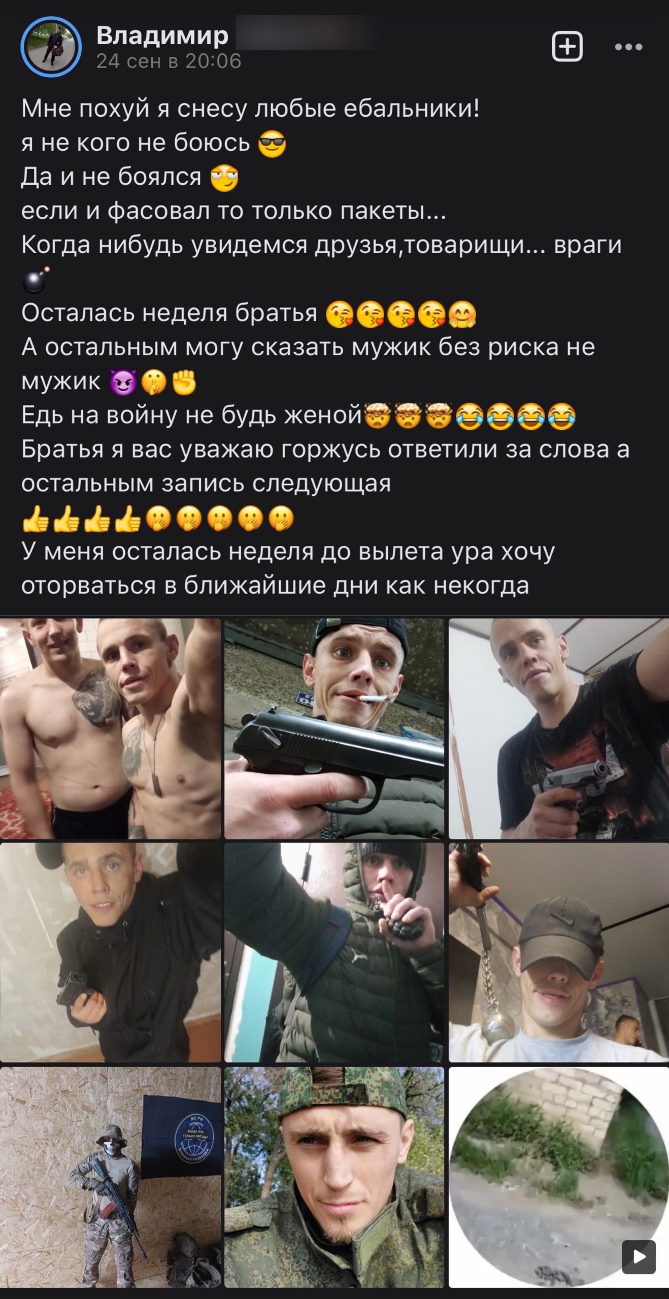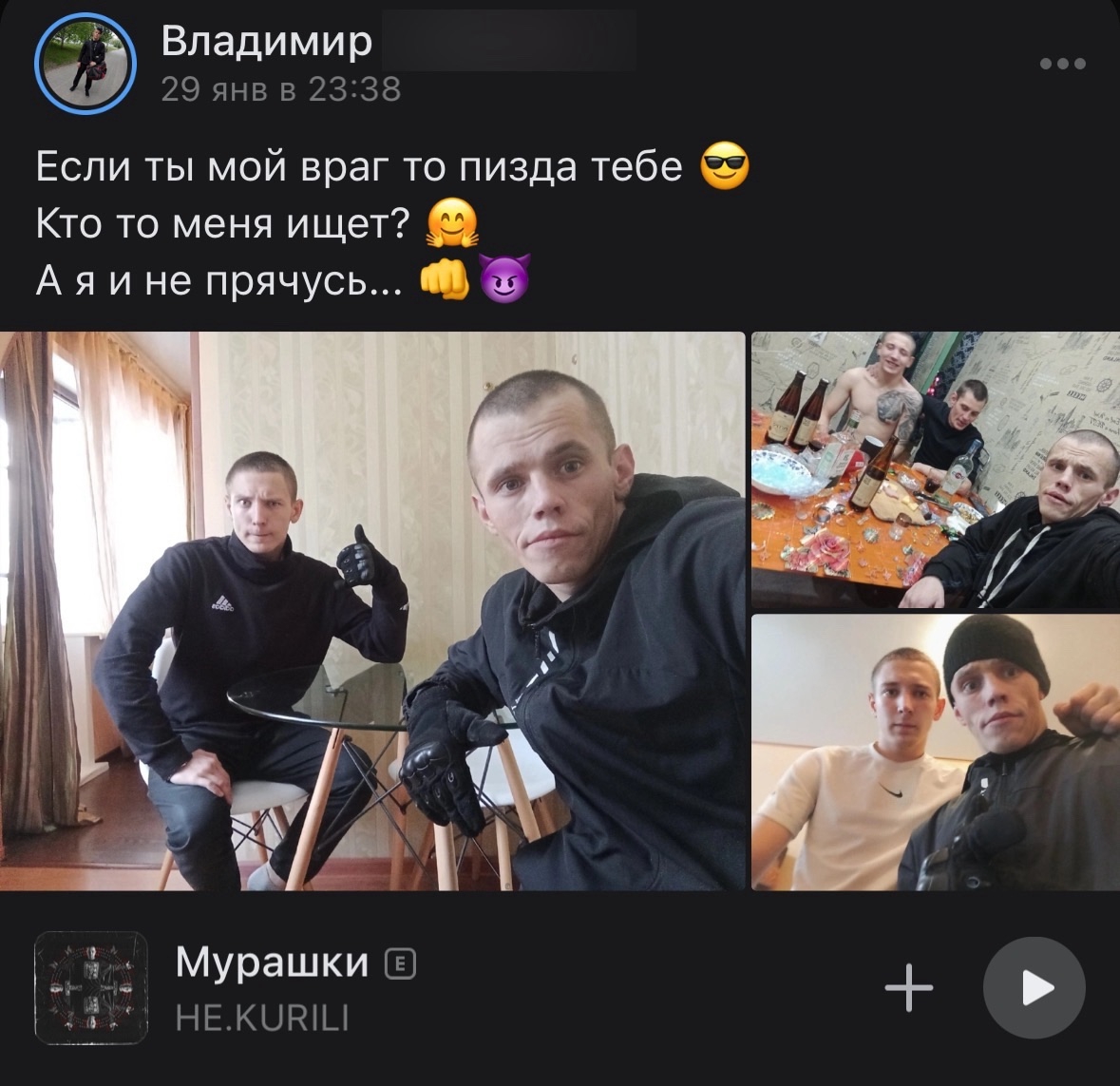 >>327231090 (OP)>>327231127>>327231159 Что сказать-то хотел? То что они выглядят быдловато? Так такие как ты клавиатурщики сидят трясутся, пока вот такие ребята воюют, а интеллигенция вообще предала Родину и убежала за границу. Так что завидуй парням молча.