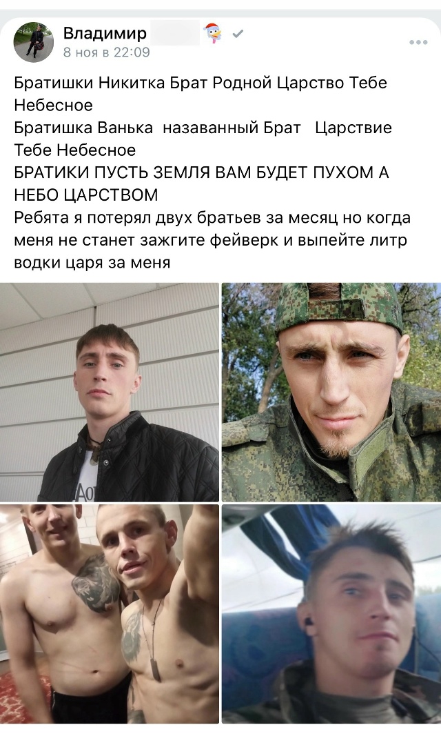 >>327236868 >Старый копиум. Это тут причем? Вот тут на одной картинке >>327236688 с дрона десятки тел. А у тебя за все годы по обмену отдали 3 тыщи тел. Очевидно что будь такое соотношение потерь как при обмене телами (6 к 1), то всу уже бы просто не существовало. >>327236868 > Когда хохлы наступали такой картины не было и близко конечно не было, потому что в 2022 году ДО мобилизации армия РФ быстренько отступала и перегруппировывалась, оставляя крупные куски территории, а не торчала в руинах до последнего. Там потери техники были огромные (брошенная), а человеческие минимальные. В следующий мега-наступ хохлов разъебали, они не захватывали территории, как это делает РФ сейчас, продвижение у них было минимальным. С 2023 года армия РФ по сути перманентно наступает с небольшими перерывами. Откуда у них тела наших наступающих солдат возьмутся?