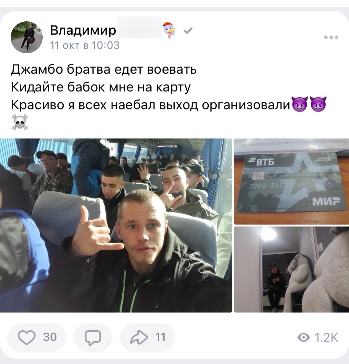 >>327237310 Охлол, ну как минимум самый нормальный вариант - отправить с тюрячку + выплата ебейшего штрафа. Я не понимаю логики - то есть вот сейчас их попытают, поиздеваются, а потом он того боевого товарища должны быть замотивированы вытаскивать на себе из любой жопы? Они же при первой возможности ему гранату в палатку закинут и потом видосов наснимают в ответ