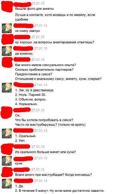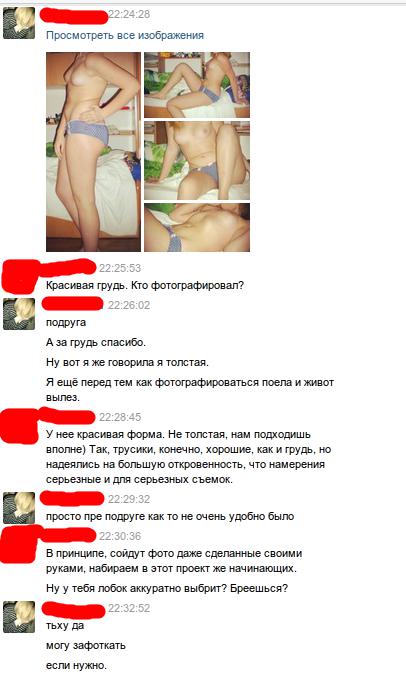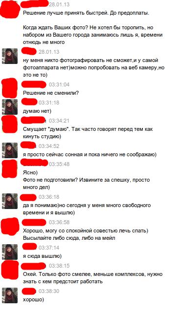 Еще одна желающая сняться. С ней скринов переписок, правда, не схоронил.