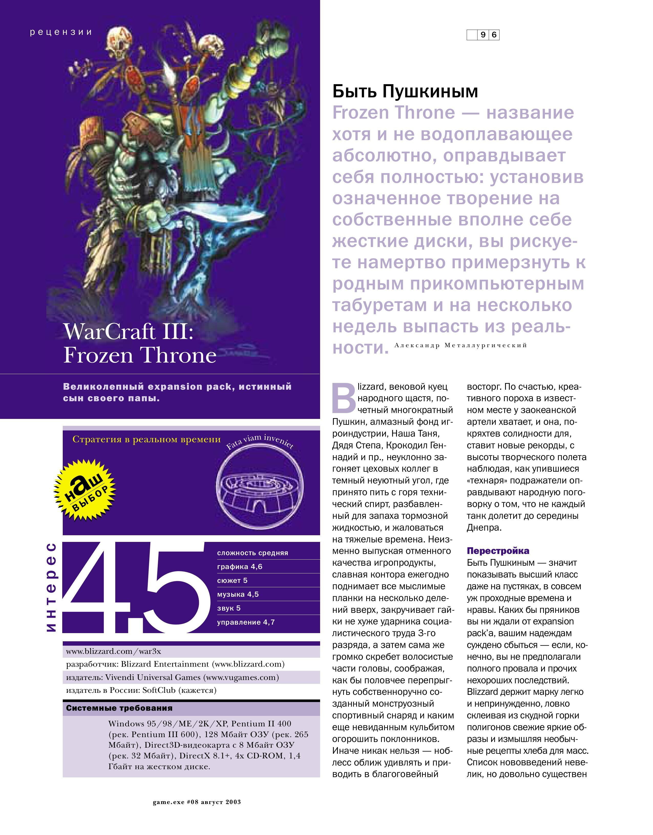 А ведь это интересный вопрос. Я уверен, что в любом журнале были игры, которые, несмотря на высокую оценку, не взлетели и ныне позабыты (заслуженно и не очень). И наоборот, есть игры с умеренными рейтингами, тем не менее получившие культовый статус (Tony Hawk's Underground 2, например). Кто-нибудь пробовал стянуть с Русракера условный Kohan 2 и поиграть в него?