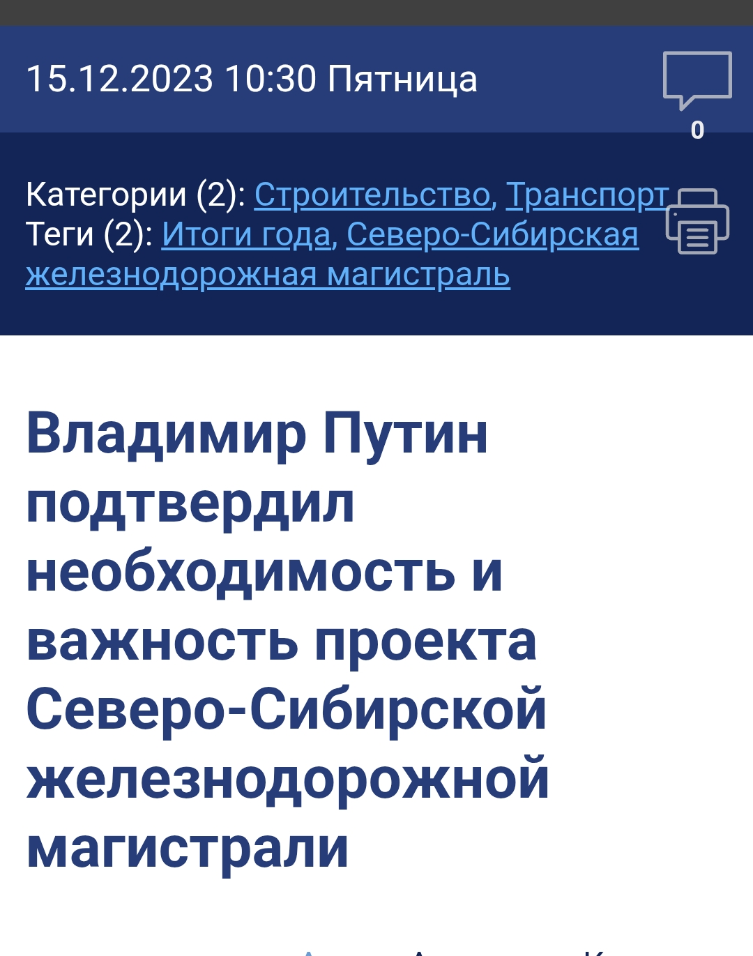 Российское правительство признало строительство Северо-Сибирской железнодорожной магистрали нецелесообразным из-за стоимости проекта в 50 триллионов рублей, сообщил «Коммерсантъ» 3 декабря со ссылкой на источник. Вице-премьер Виталий Савельев направил президенту Владимиру Путину письмо с выводом об отказе от строительства участков от Нижневартовска до Белого Яра и от Таштагола до Урумчи в Китае. Решение принято в первую очередь из-за сложных геологических условий, которые делают проект чрезвычайно дорогим. При этом инвестиционная программа РЖД уже существенно сокращена: на 2026 год планируется выделить не более одного триллиона рублей против 890,9 миллиарда рублей в 2025 году и 1,49 триллиона рублей в 2024 году. Правительство планирует обсудить инвестиционную программу РЖД 11 декабря.