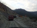 Сделаю маленькое отступление. Вот что было у нас в машине (и что должно быть в любой машине на трассе «Колыма» зимой): На движке – войлок. Радиатор закрыт кожухом. Все стёкла кроме заднего – двойные. В багажнике: 4 десятилитровых канистры с бензином. Масло на долив. Антифриз. Гидравлический домкрат (в дополнение к штатному). 4 камеры чтобы вставлять в бескамерку в случае чего (одна пригодилась когда пропороли боковую поверхность). Запасной аккумулятор (понятно разряженный – но можно зарядить и будет работать в случае чего). Дополнительный набор инструмента. Провода. Два троса. Топор. Пила. Лопата снеговая. Лопата штыковая. Сапёрная лопатка. Ножи. Газовая горелка. Розжиг – 4 литровых бутылки. Старые газеты и картон. Запасная тёплая одежда и обувь. Брезент. Серьёзная аптечка. Аккумы для сотовых. Фонарики. И всякая мелочь. И это - невзирая на то, что машина была почти новая.