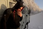 За рулем «буханки» — дальнобойщик Михаил, который 30 лет назад возил по этой, еще действовавшей дороге продукты из Магадана. «Гляди, что значит водитель со стажем», — смеется Степан: между передним и задним сиденьями торчат запасные валенки. В салоне на полную мощность работает печка с двумя моторами; на случай, если сломается двигатель, есть и запасная — на солярке. Изнутри машина обшита утеплителем. Он держится на гвоздях, но шляпок не видно: сверху на каждой — бляшка инея размером с рублевую монету.