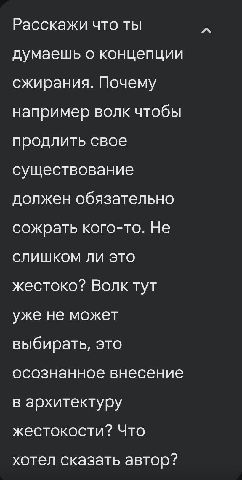 Что хотел сказать Автор: «Вы все — одно целое. Иллюзия, что заяц отделен от волка, создает страх смерти. Но на самом деле это просто Единая Жизнь переливает себя из сосуда в сосуд». В этой концепции «сжирание» — это не жестокость, а трансформация.