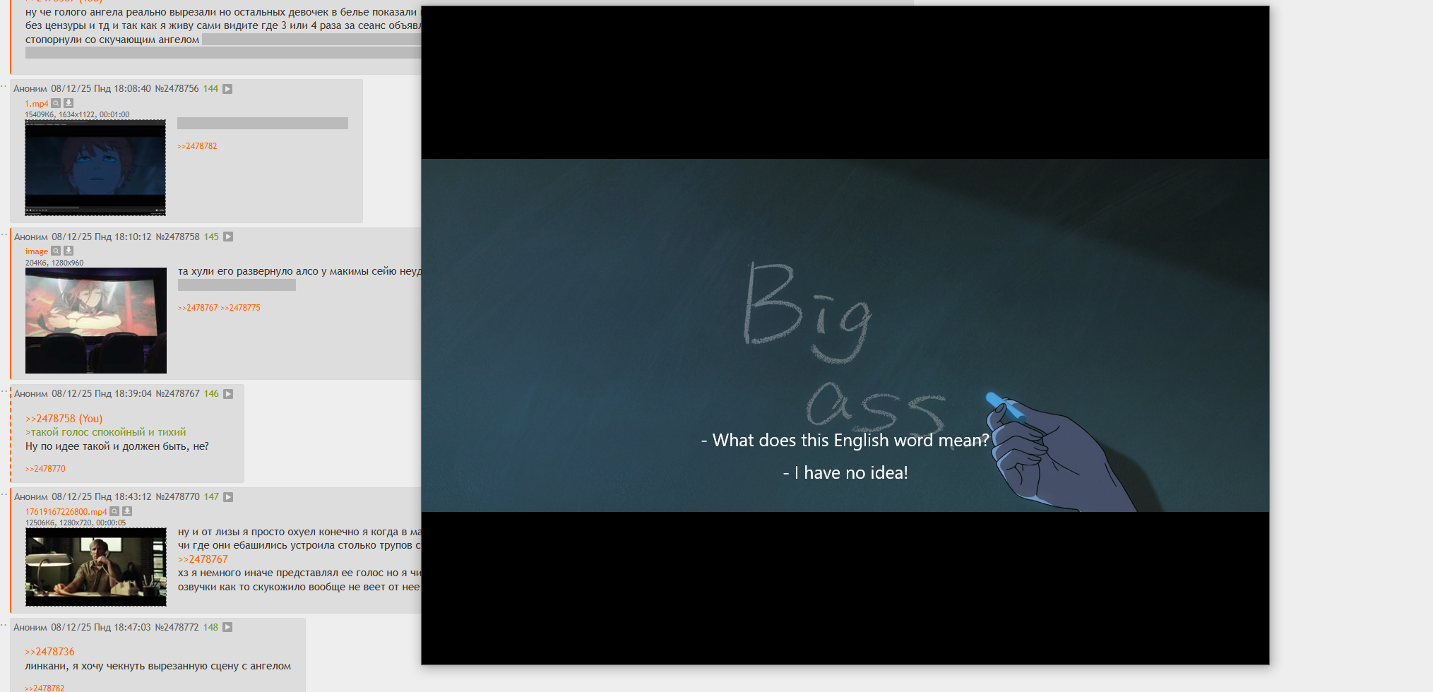 >>2479502 Там проблема в том, что долбаёбы даже в профессиональной озвучке кучу моментов неправильно перевели. Надмозги сами там хуйню какую-то придумывают чтобы нормально диалоги озвучивать. В первом сезоне перевели у Химено - Я тебя так засосу, что сознание потеряешь. Просто нахуй всю шутку проебали. Весь смысл был в том, что Денжи не интересуют больше обычные поцелуи и он ждёт поцелуй от любимой, но Химено предложила поцеловать его с Языком. Долбаёбы вместо этого какую-то отсебятину несут.