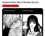 >>2479167 Лол помню как во второй главе состояние Дэндзи назвали настолько редким что для него даже нет названия. Подразумевалось что Дэндзи единственный кто смог подружиться с демоном и тот дал ему силу вместо захвата трупа. А потом полезли эти гибриды как с конвеера без объяснения и предыстории. Типа тот мечедаун тоже заботился о демоне и тот с ним подружился? И все те ноунеймы из концовки первой арки?