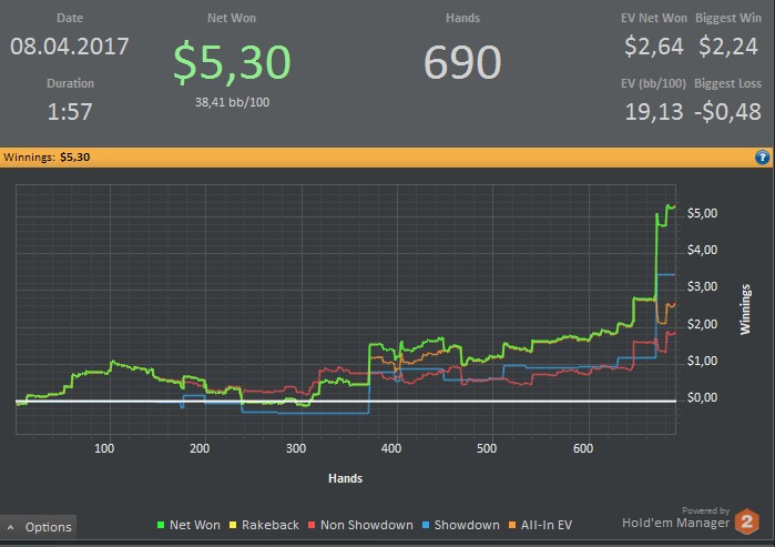 В-общем днём накатываю по 3-4к рук на нл2(так для страховки) А вечером после 9-ти начал катать десятку по-немногу. Страшного ничё нет, но уже нахуесосил парочку "регов"