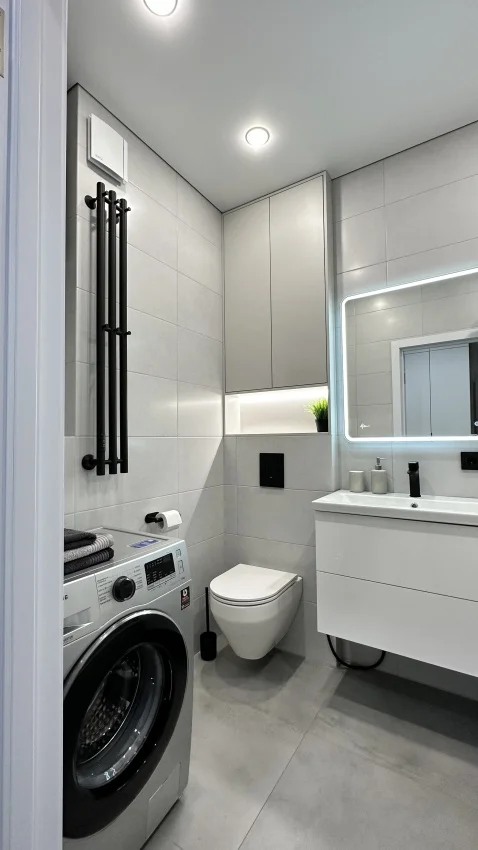 Я выбрал матовую плитку, мне кажется меньше грязи на ней видно. Под ванной как считаешь нужным. Я вижу, что так многие далают, а именно зашивают наглухо, зачем - мне не понятно. Даже в магаз стоковые экраны для ванн продаются которые наглухо закрывают. Можно же сделать дверцы. Продаются такие, а можно на заказ. Вот у тебя и доступ к сифону, и плюс дополнительное место для тряпок, доместосов, туалетной бумаги.