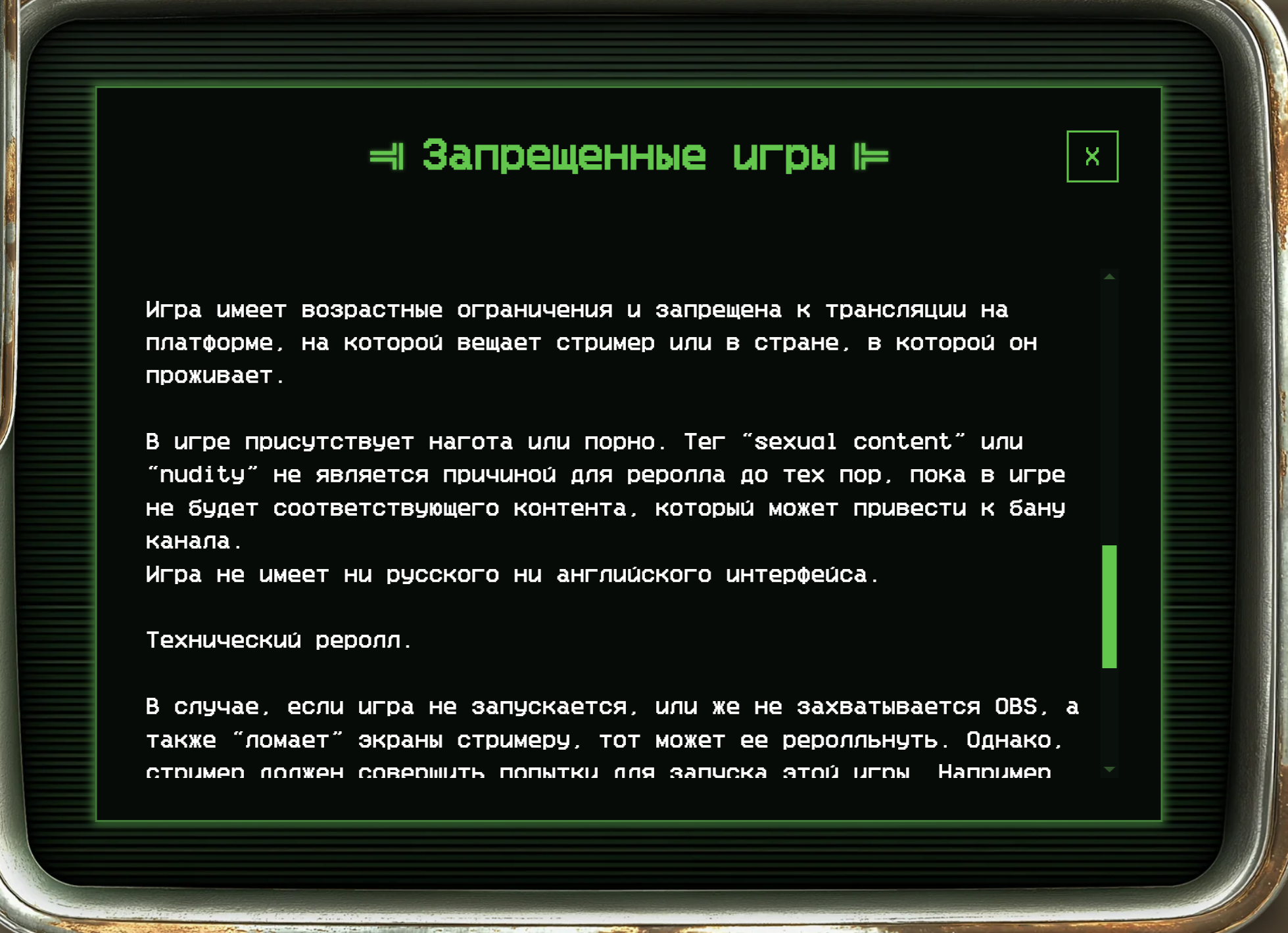 >Из-за короткой длительности всего ивента, у стримеров есть возможность рероллить по собственному желанию любые игры, время прохождения которых превышает 30 часов. Учитывайте это при заказе игр. ахахха ору нах