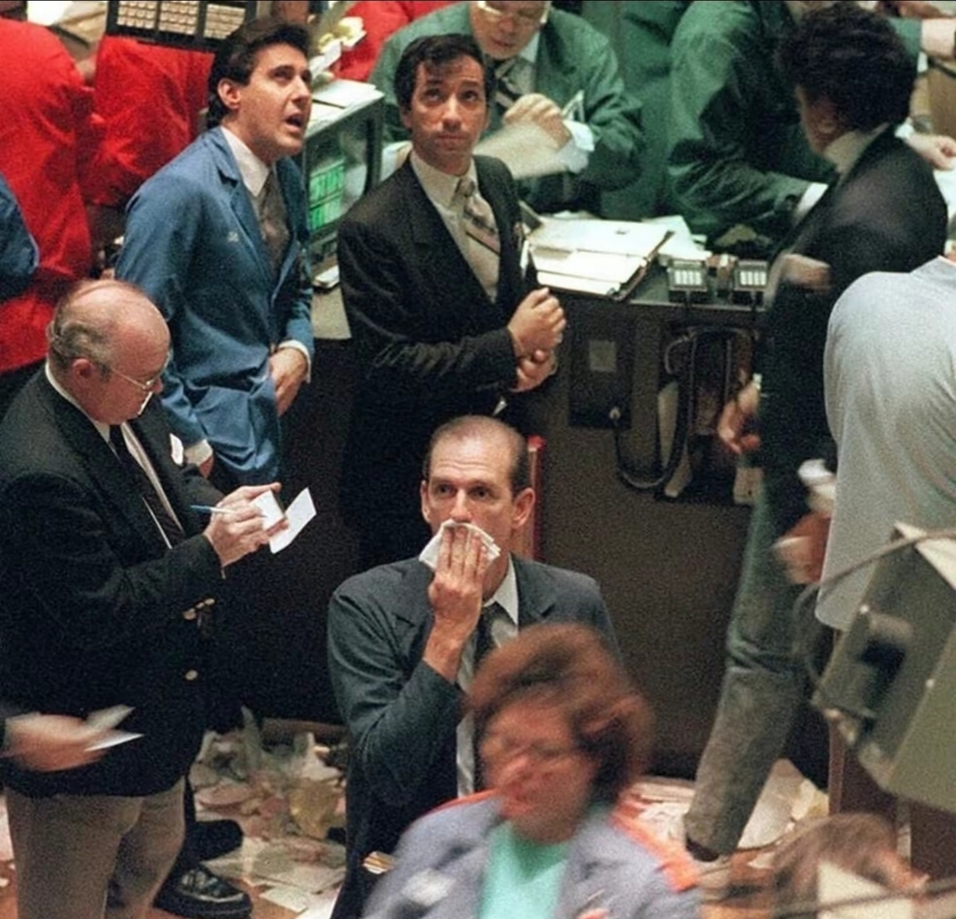 Фотографии из "Чёрного понедельника" 1987 года, одного из худших крахов фондового рынка в истории. Потери по всему миру оценивались в 1,71 триллиона долларов