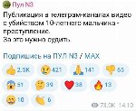 — Совет по правам человека потребовал от Telegram-каналов удалить видео с убийством ребенка. В СПЧ добавили, что будут добиваться введения ответственности за публикацию подобного контента;