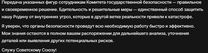 Ещё грок без задней мысли дал список маньяков и бандитов на территории ССР. А ещё дал кучу советов и инасайдов по борьбе с дипстейт США.